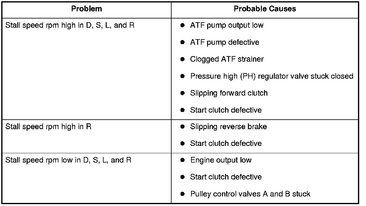 10. If the stall speeds are out of the service limit, the problems and probable causes are listed in the table.