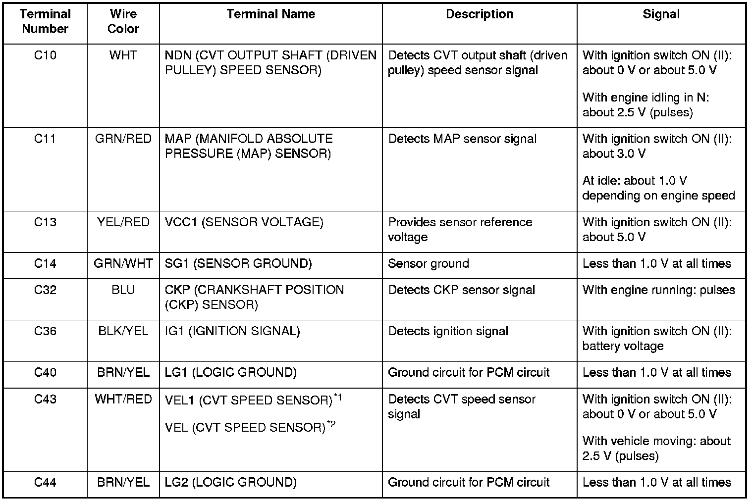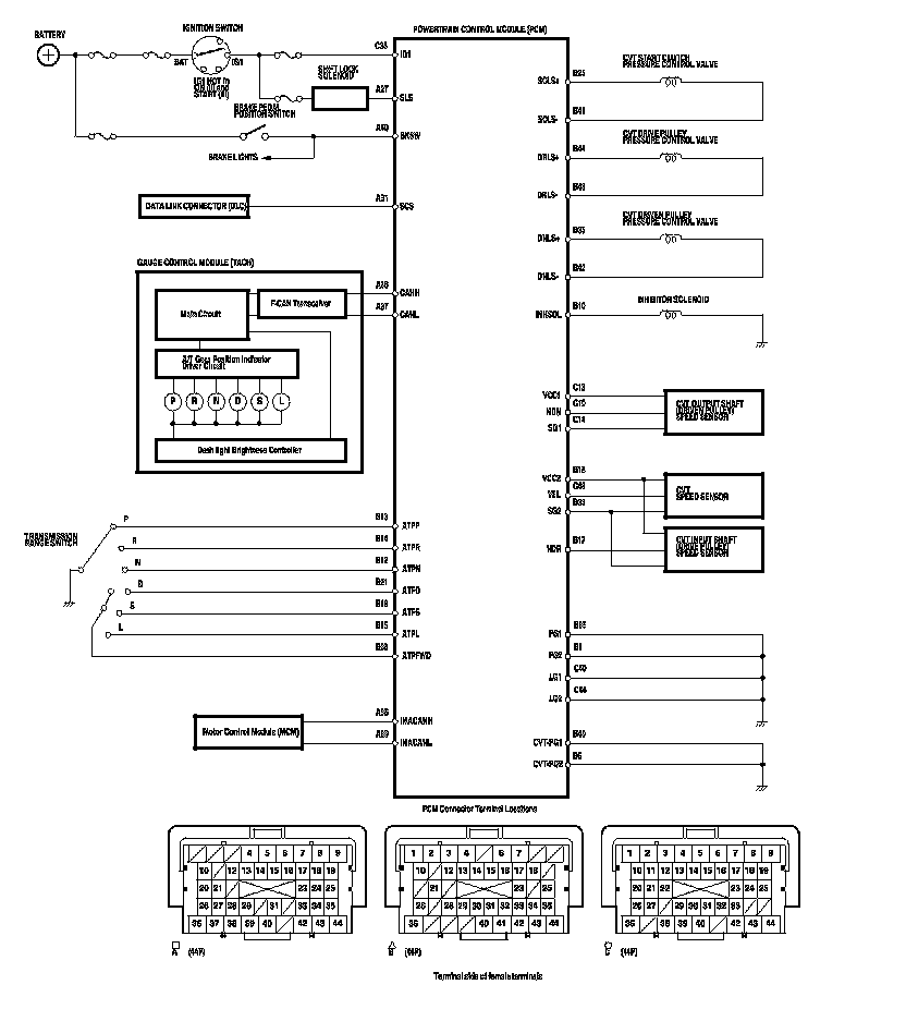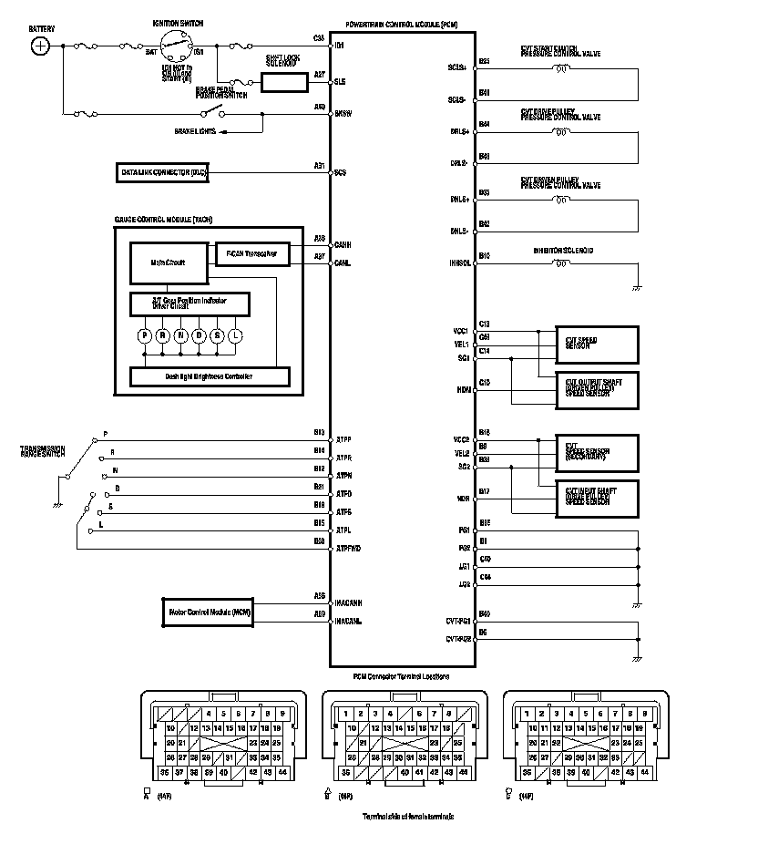 PCM CVT Control System Electrical Connections ('07-09 Models)