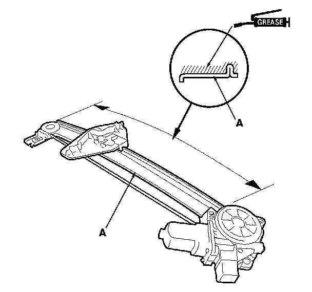 12. Grease all the sliding surfaces of the regulator (A) where shown.