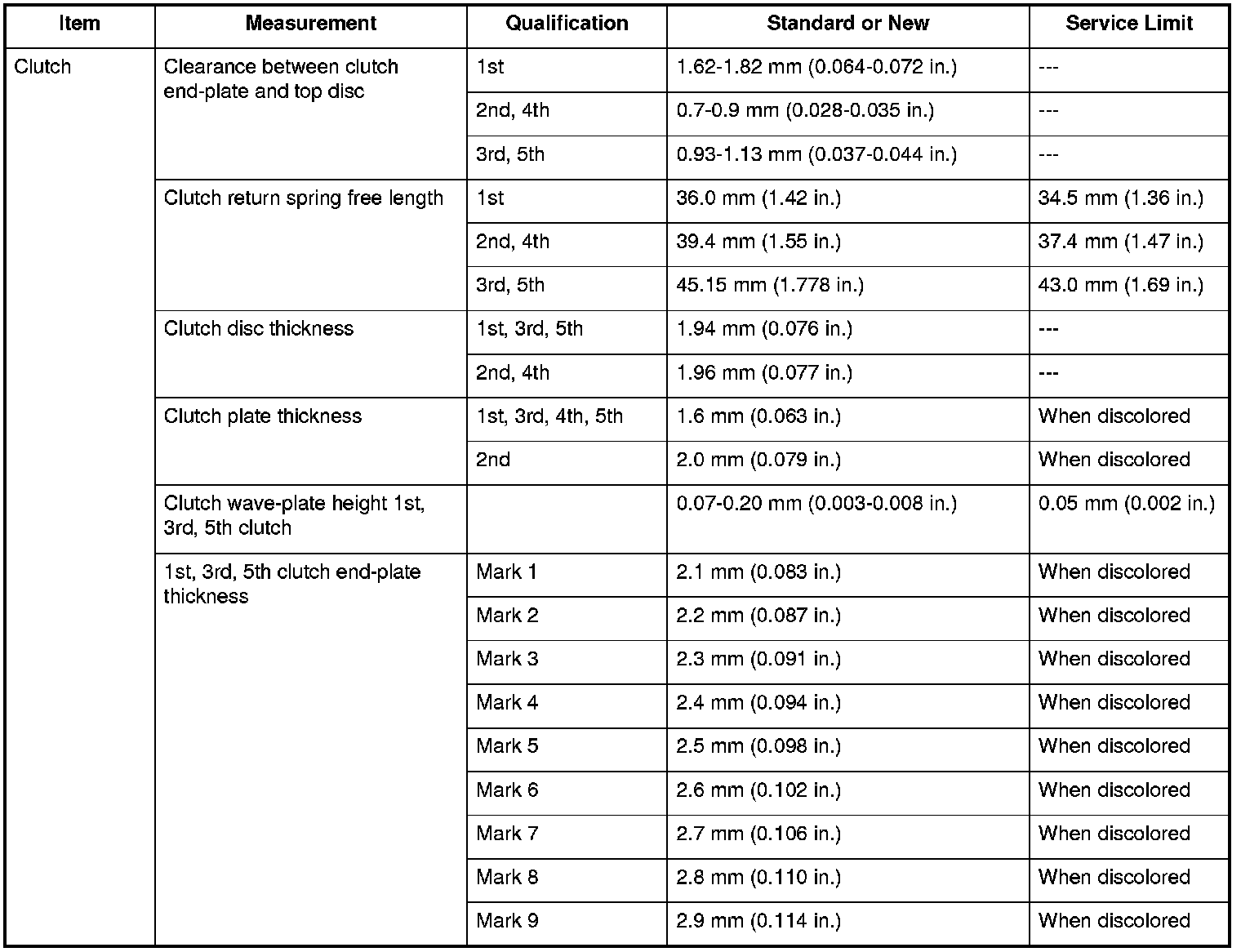 Clutch Specifications
