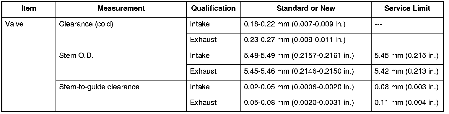 Valve Specifications