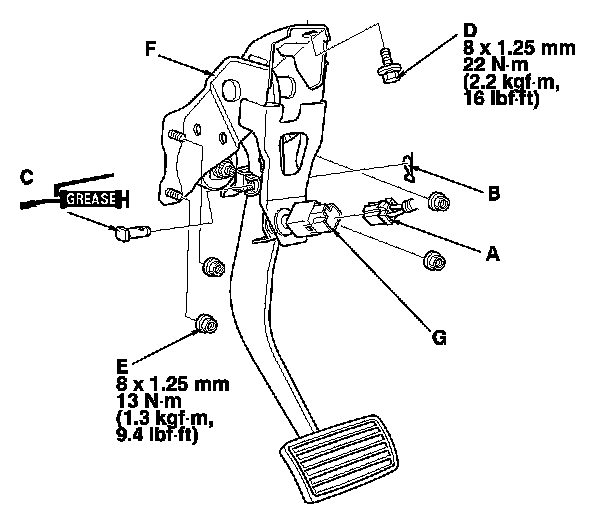 4. Remove the brake pedal with bracket (F).