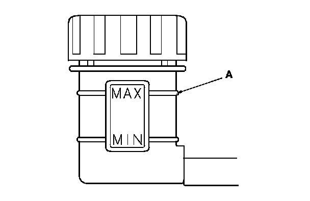 1. Make sure the brake fluid level in the clutch reservoir is at the MAX (upper) level line (A).