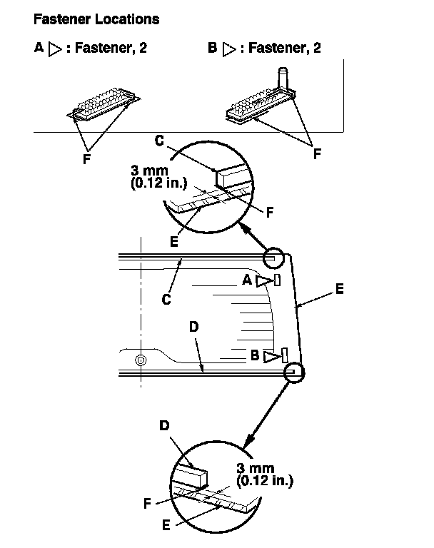 - Be sure the fasteners and the rubber dams line up with alignment marks (F).