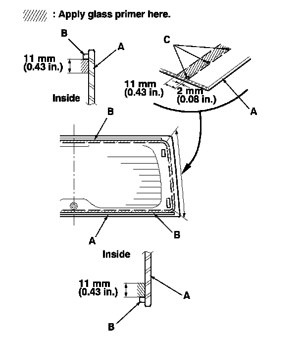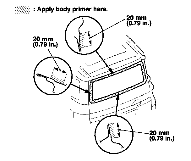 - Never touch the primed surfaces with your hands. If you do, the adhesive may not bond to the rear window properly, causing a leak after the rear window is installed.
