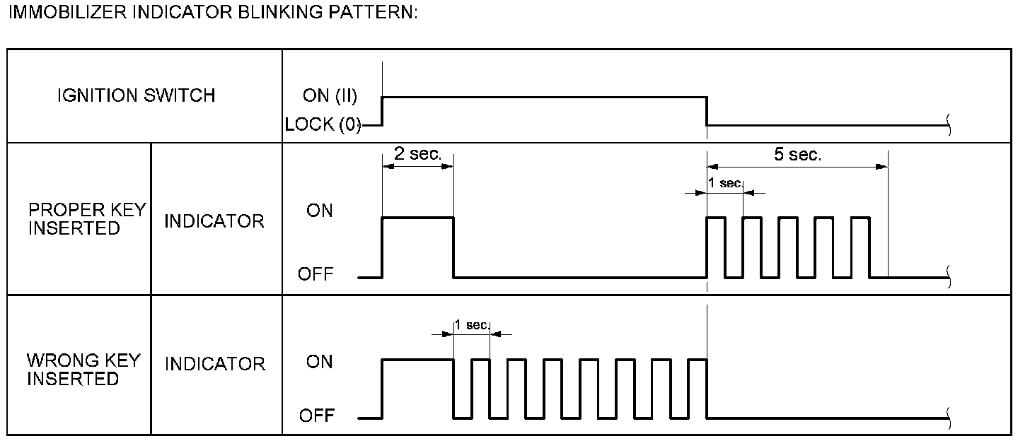 - If the proper key has been used, the immobilizer indicator will come on for about 2 seconds, then go off.