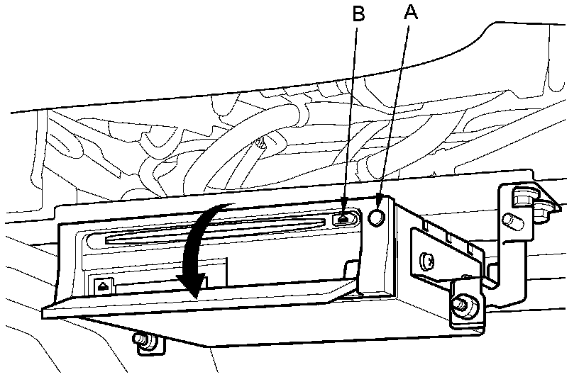 2. Push the open button (A) of the navigation unit located under the driver's seat.