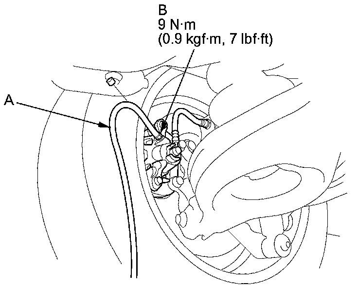 4. Attach a length of clear drain tube (A) to the bleed screw (B), then loosen the bleed screw to allow air to escape from the system. Then tighten the bleed screw securely.