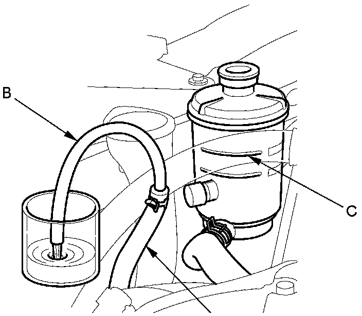 NOTE: Stop the engine immediately once the fluid stops running out of the hose to prevent pump damage.