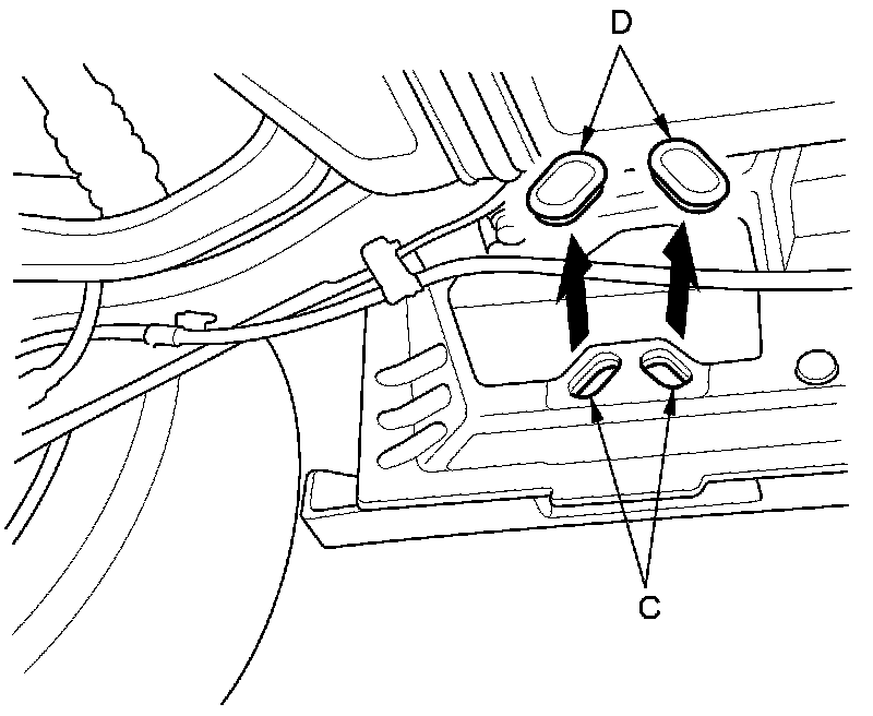 NOTE: The rear tie down hook slots (C) use rubber plugs (D) to cover the opening.