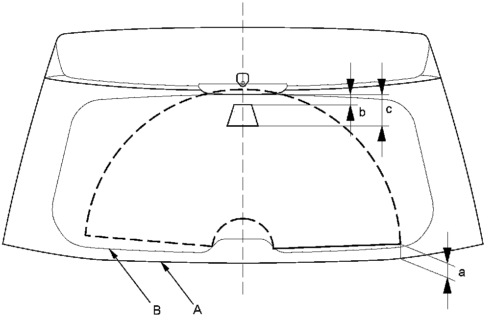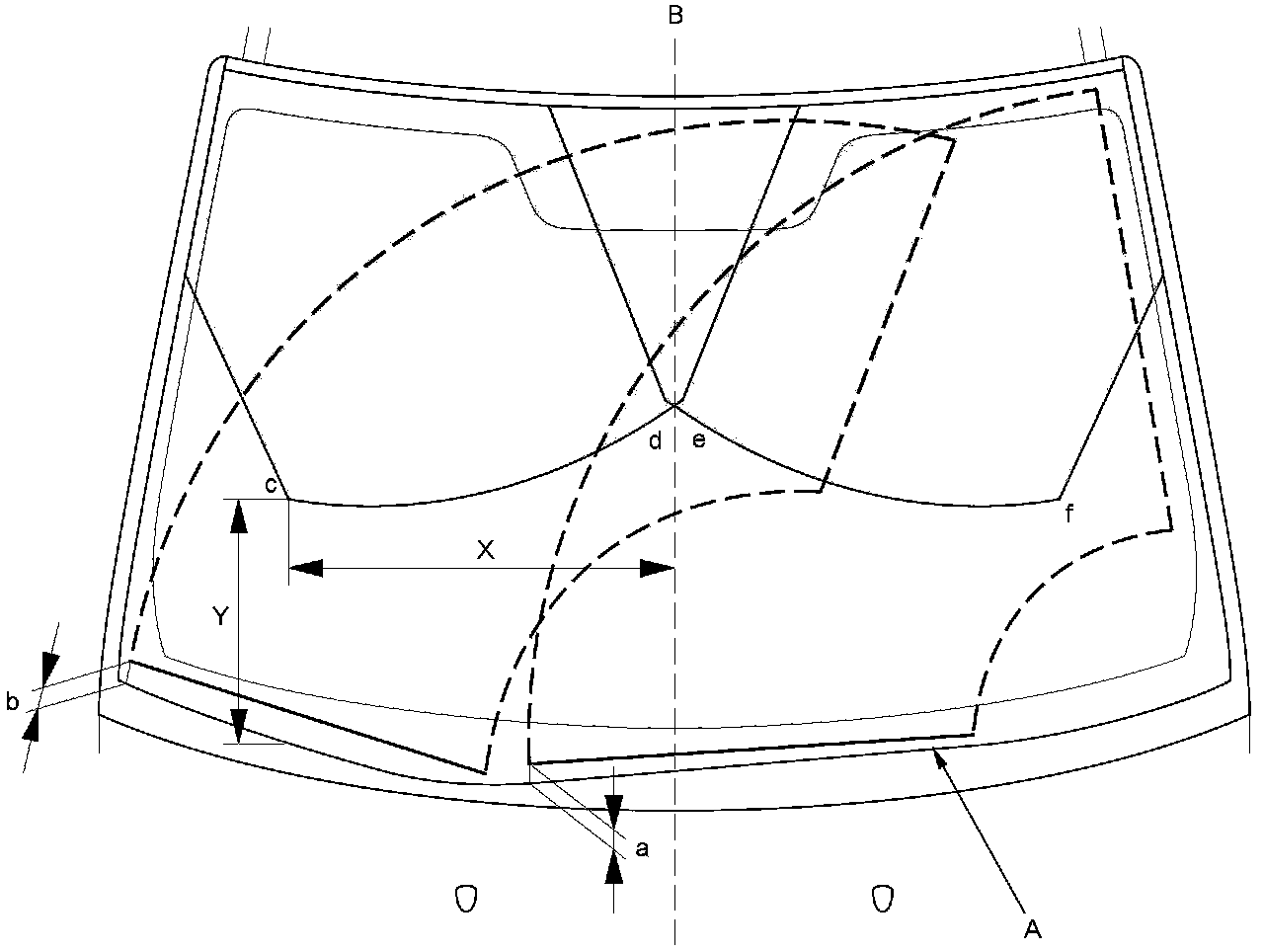- X shows the distance from the centerline (B) of the windshield.