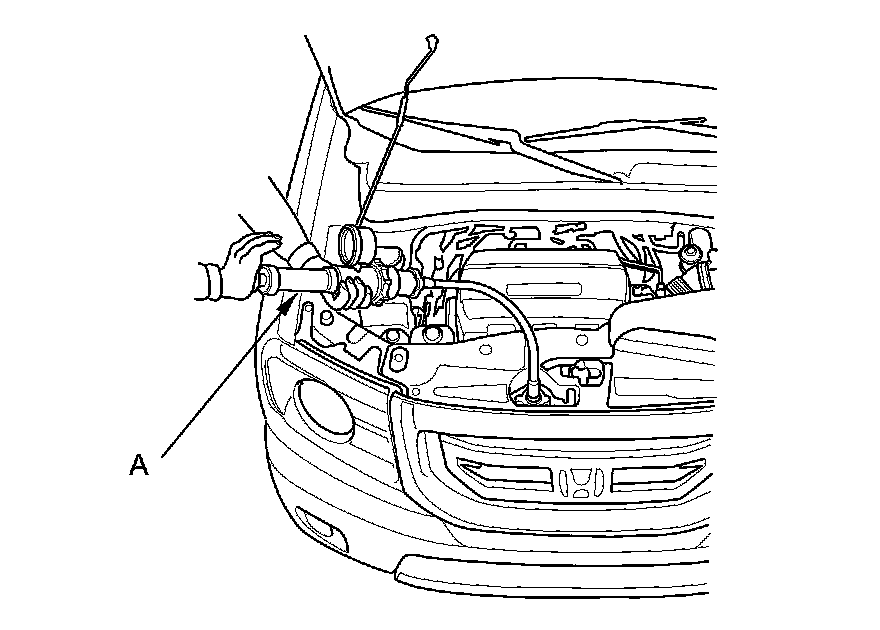 2. Attach a commercially available pressure tester (A) to the radiator, and apply a pressure of 93-123 kPa (0.95-1.25 kgf/cm2, 13.5-17.8 psi).
