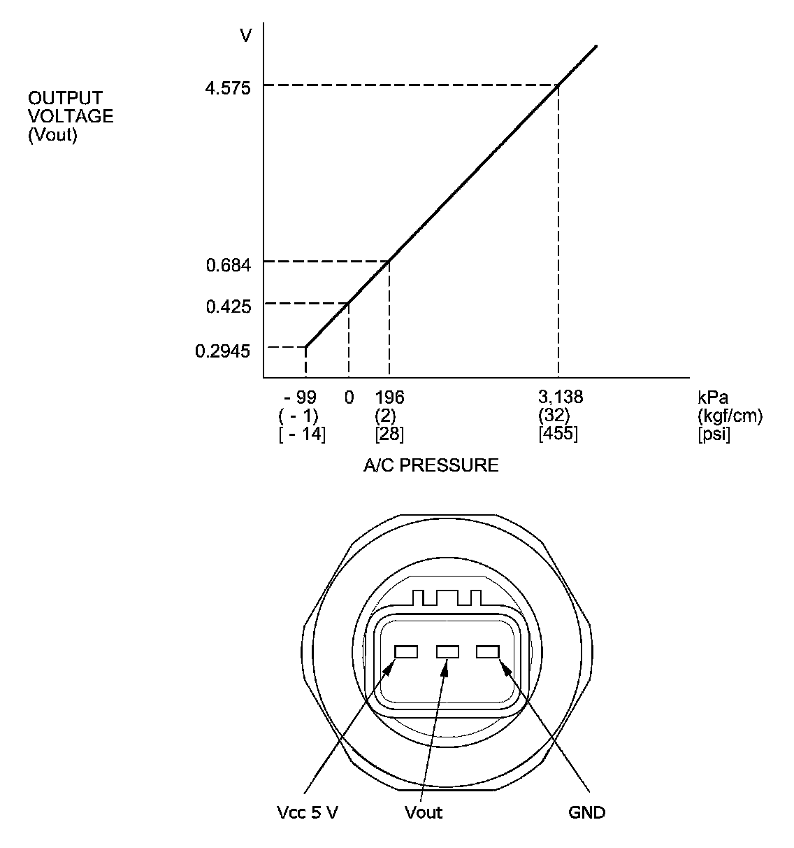 The response of the A/C pressure sensor is shown in the graph.