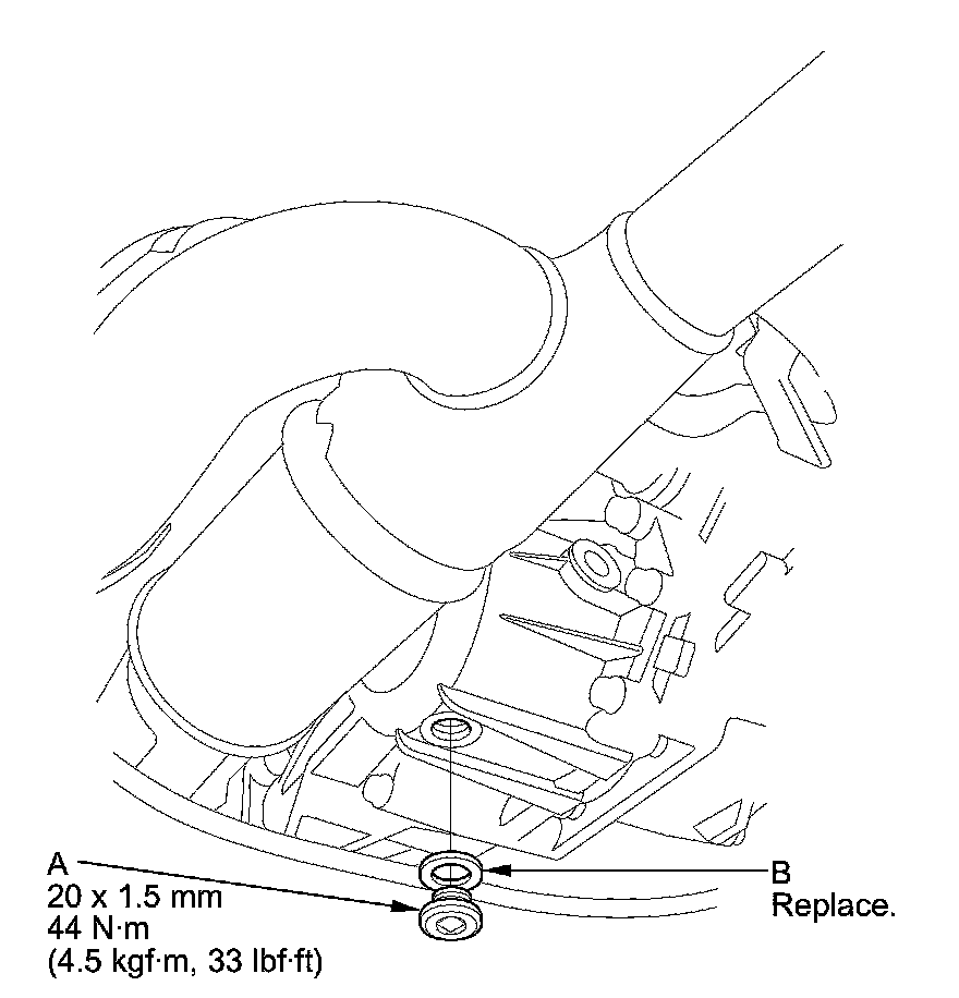 6. Remove the filler plug (A) and the sealing washer (B).