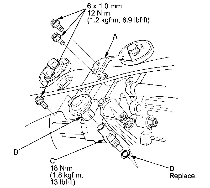 4. Install the rear differential fluid temperature sensor with a new O-ring (D) in the reverse order of removal