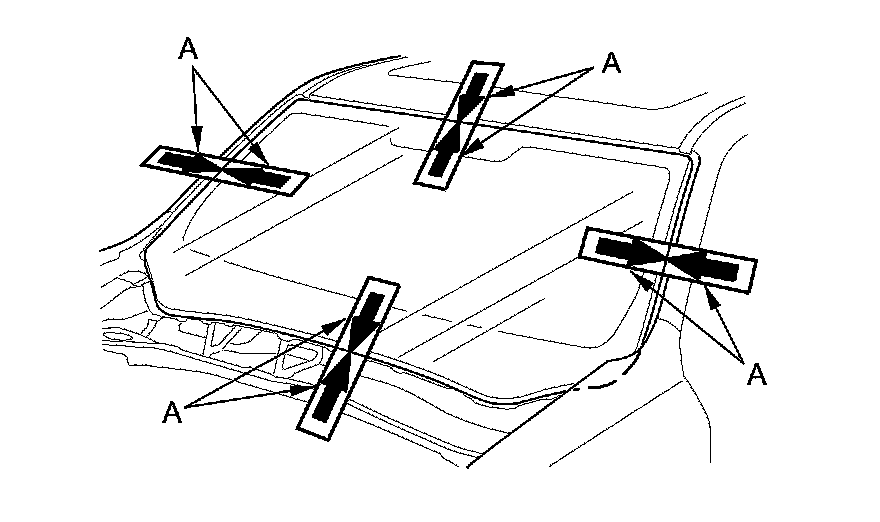 3. If the old windshield is reinstalled, make alignment marks (A) across the glass and body with a grease pencil.