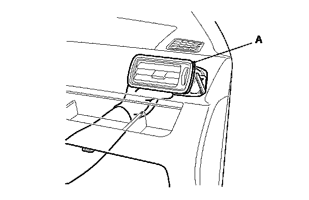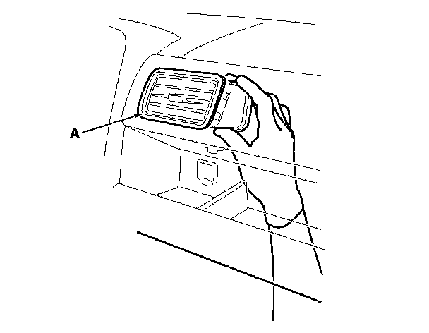 3. To loosen, push on the dashboard vent (A) by reaching through the glove box opening.