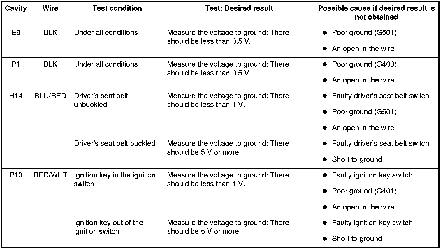 - If the beeper sounds and the seat belt reminder light flashes, go to step 13.