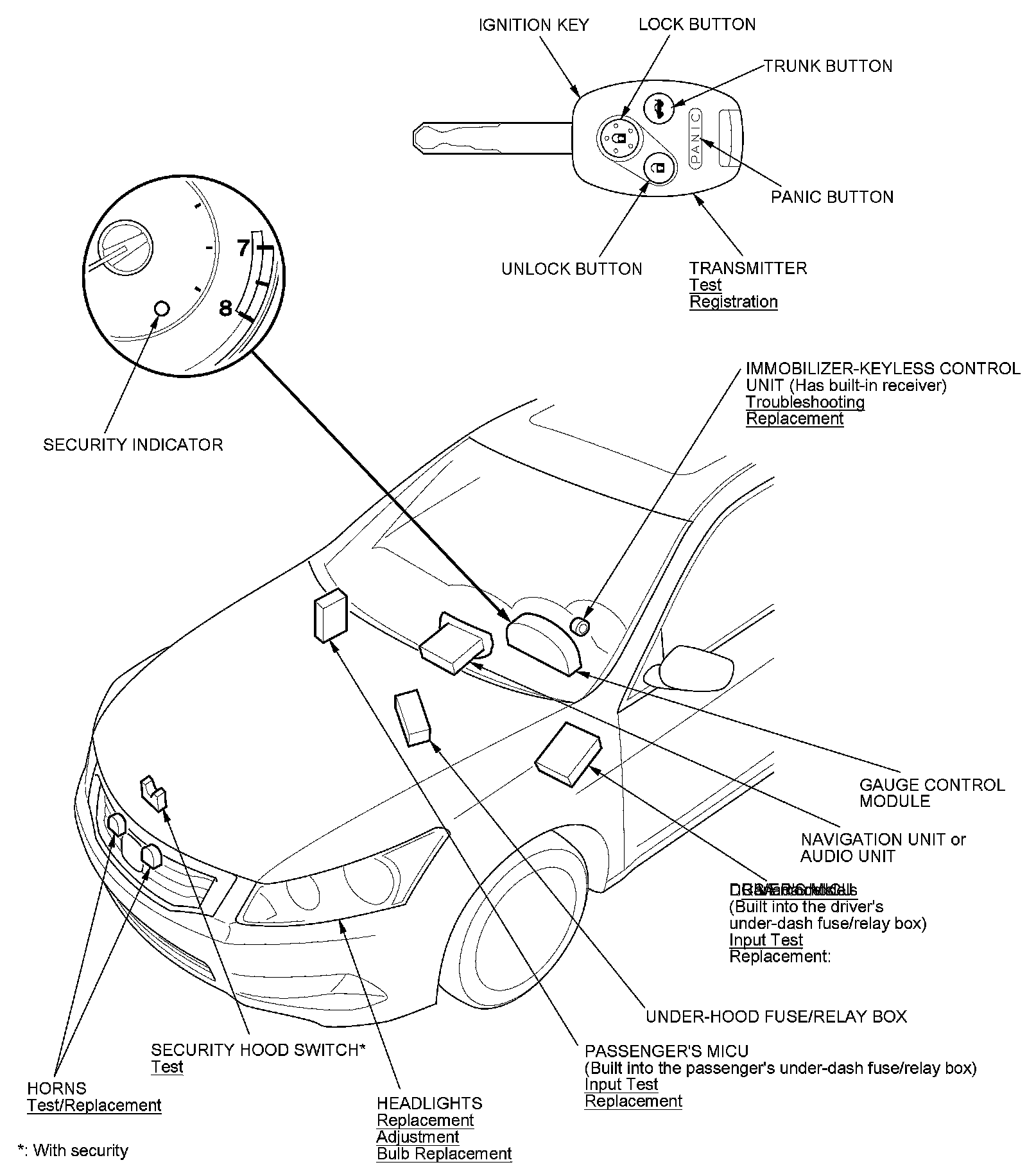Keyless/Power Door Locks/Security System Component Location Index