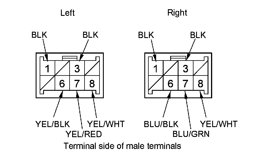 5. Record the power mirror 8P connector terminal locations and wire colors.