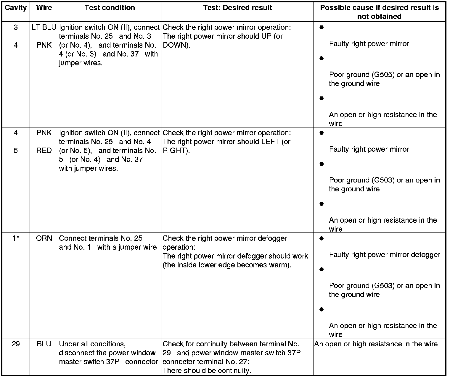 Power Mirrors (Front Passengers Power Window Switch) Input Test