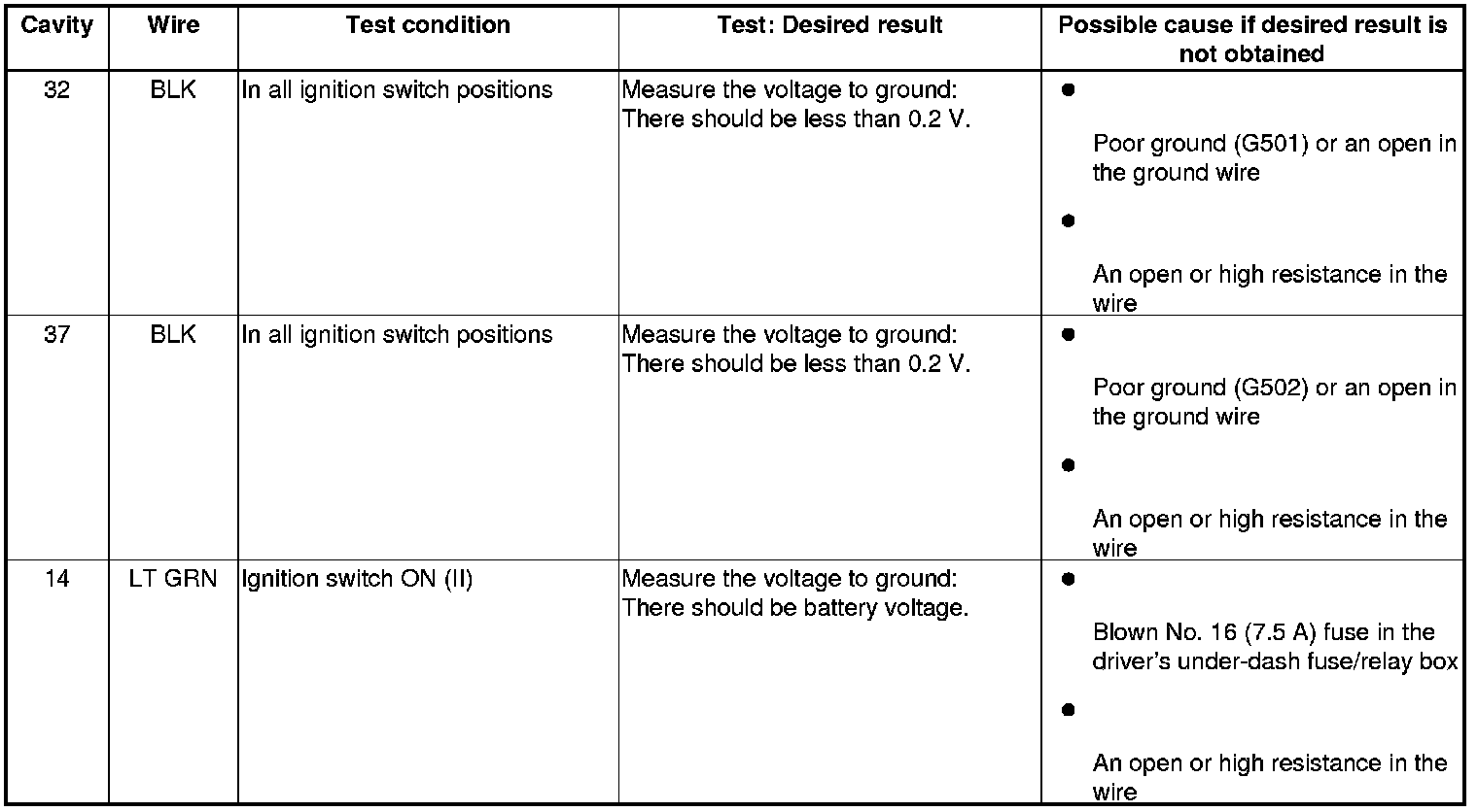 6. With the connector still disconnected, do these input tests at the following connector.