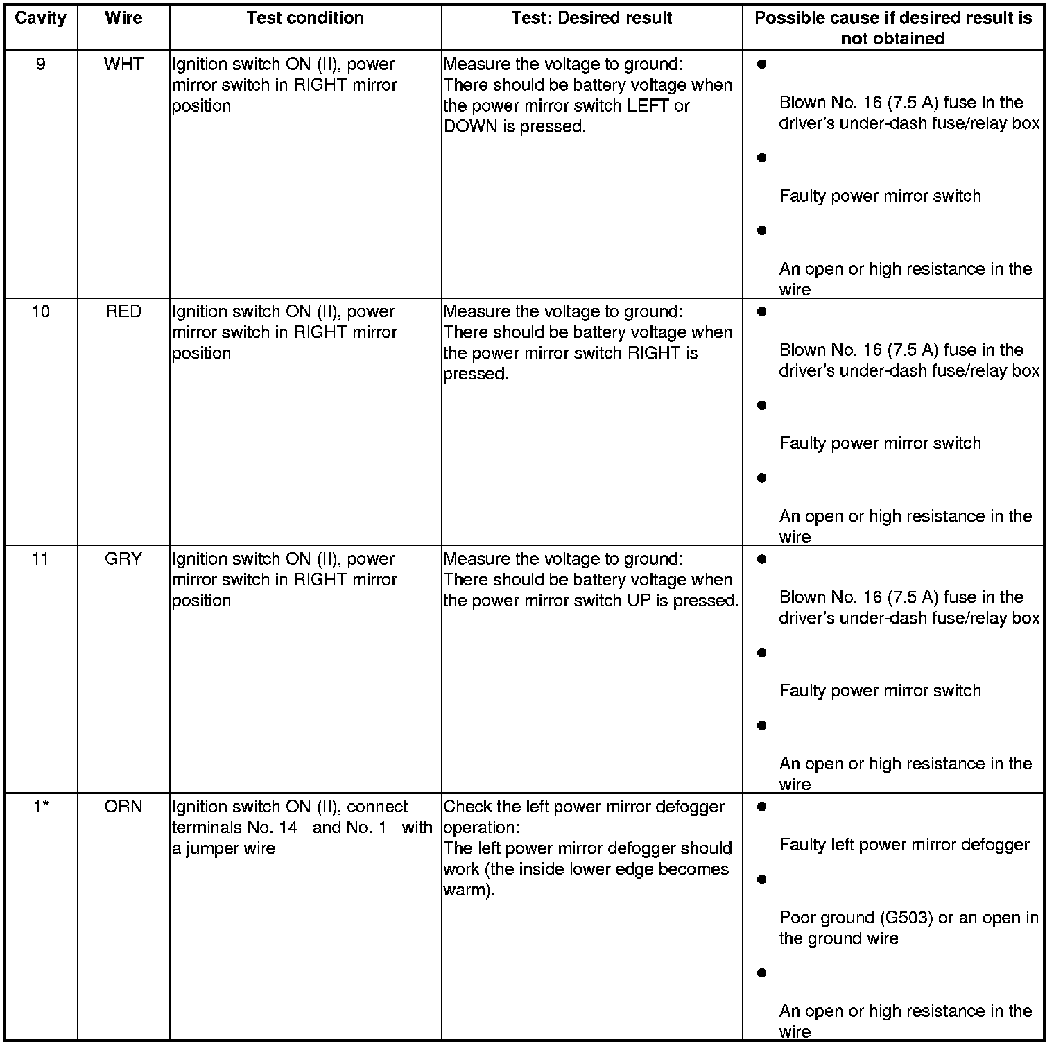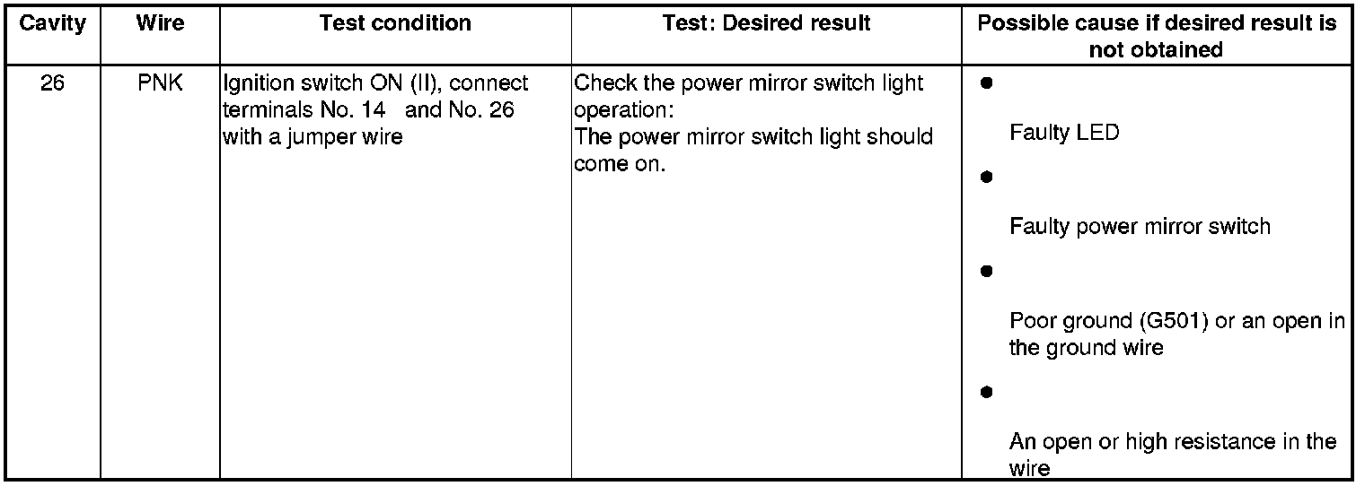 Power Mirrors (Power Window Master Switch) Input Test