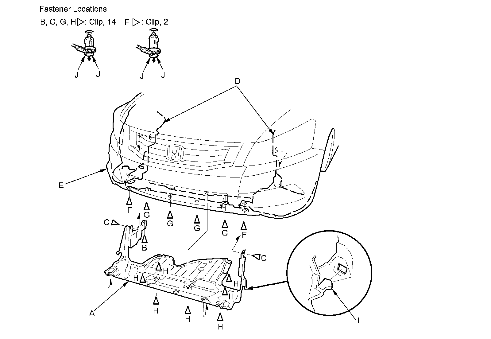 NOTE: To release the clips, pry up on the center pin at the notch (J).