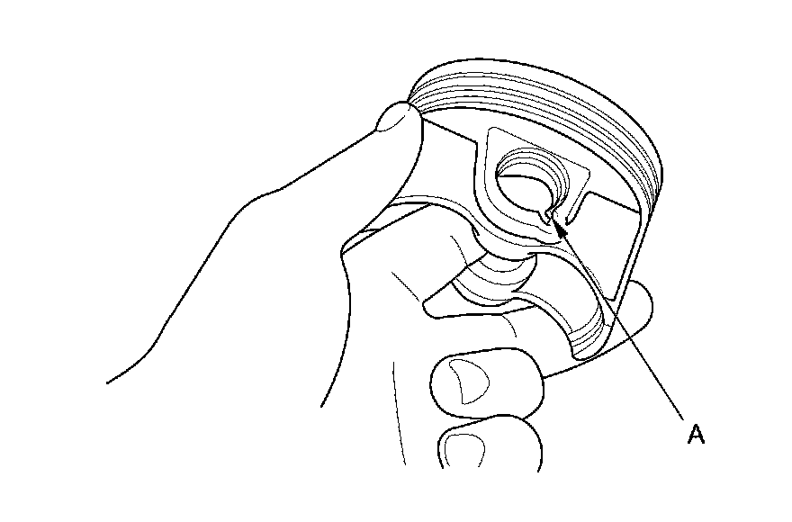 1. Install a piston pin snap ring (A) only on one side.