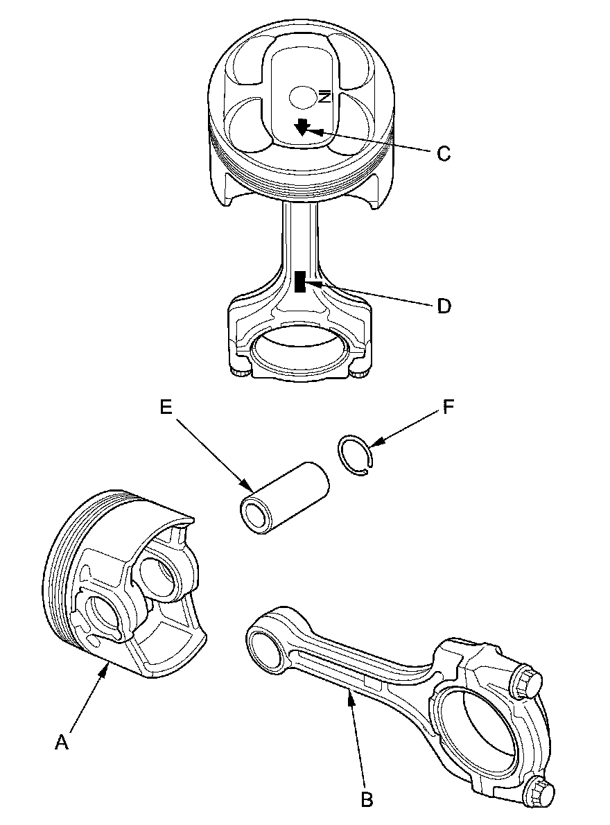 NOTE: Inspect the piston, the piston pin, and the connecting rod when they are at room temperature.