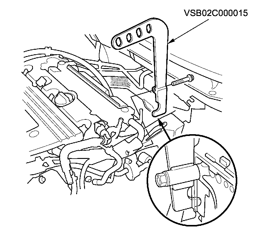 3. Attach the engine hanger adapter (VSB02C000015) to the threaded hole in the cylinder head.