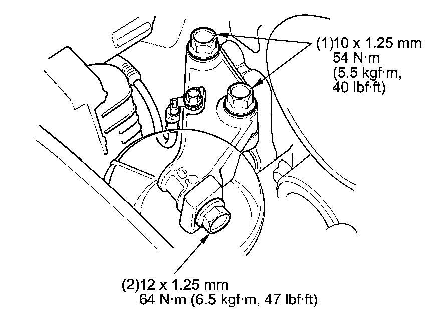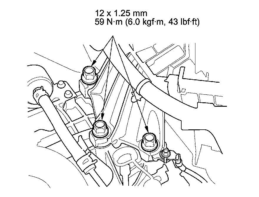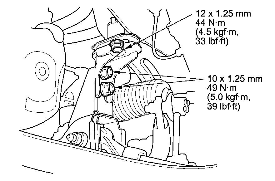 34. Loosen the upper transmission mount bracket mounting bolts, then retighten them to the specified torque.