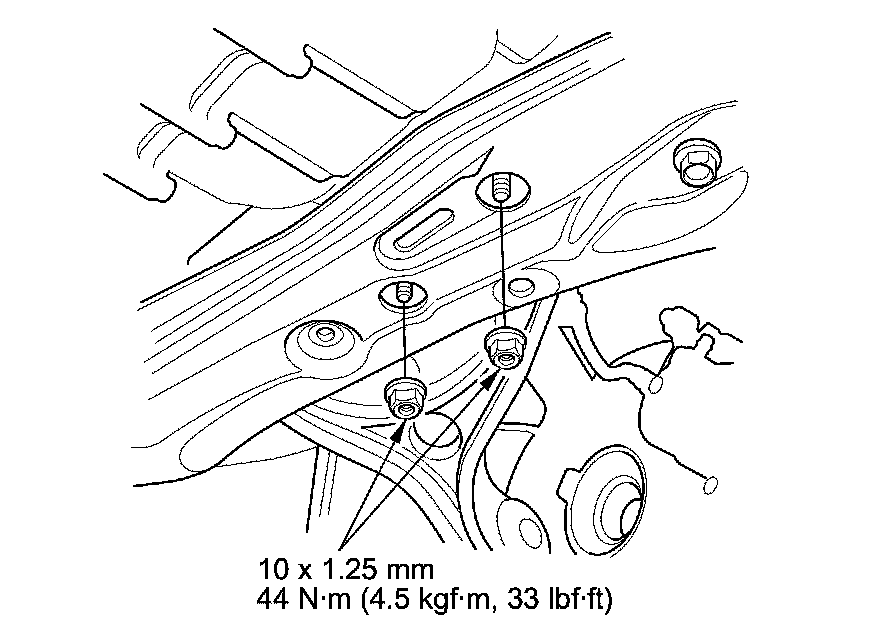 21. Tighten the front and rear subframe mounting bolts to the specified torque.