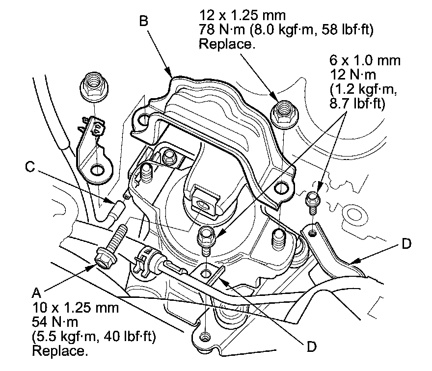 28. A/T model (without ATF warmer): Install the ATF cooler line brackets (D).
