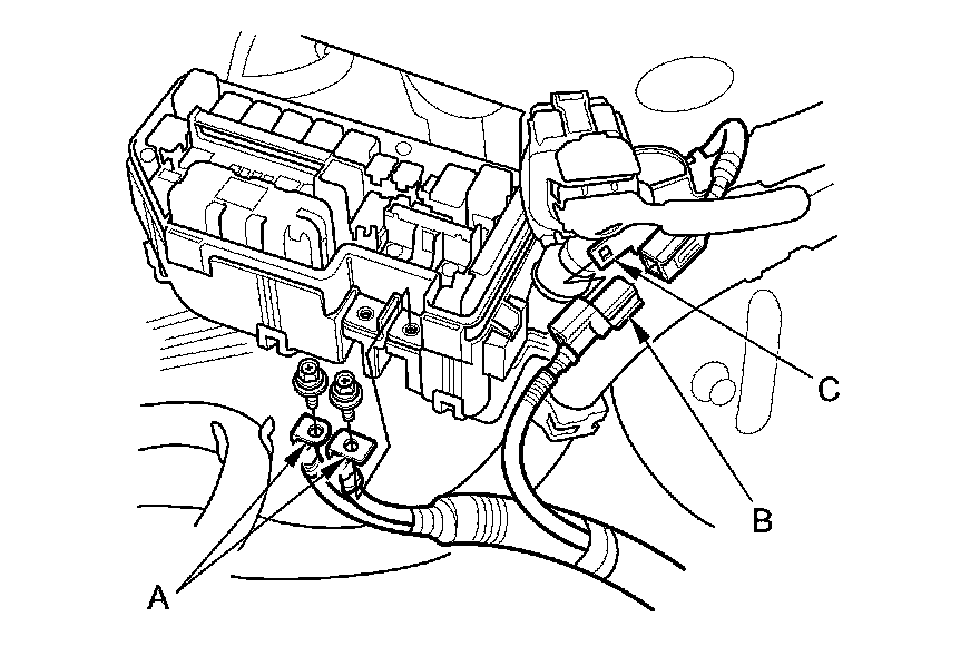 62. Connect the battery cables (A) to the under-hood fuse/ relay box.