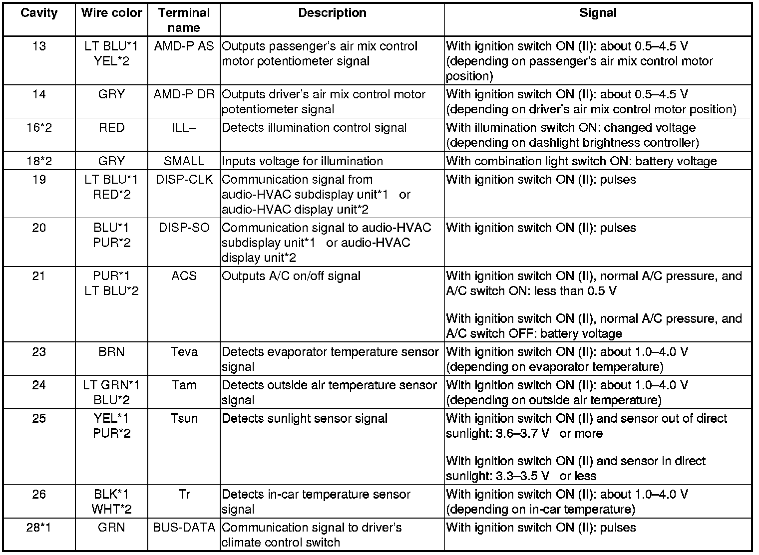 In the event that the navigation system malfunctions, or when driving in areas where the navigation cannot determine the vehicle position (non-coverage areas, tunnels, etc.), the climate control system will operate the same as a vehicle without navigation system