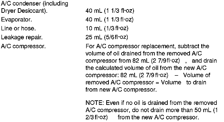 Too little oil damages the A/C compressor; too much oil reduces the cooling capacity of the system, and can produce high vent temperatures.