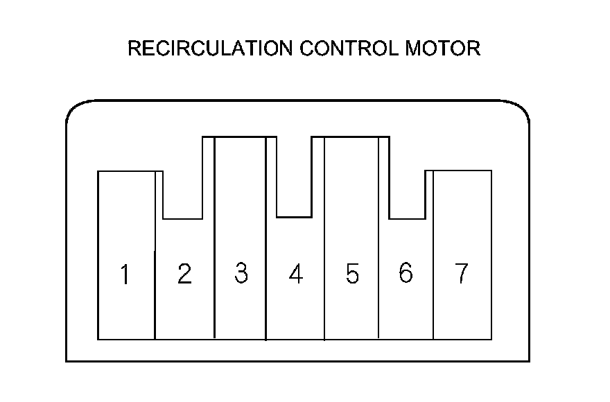 4. Measure the resistance between terminals No. 5 and No. 7 of the recirculation control motor. It should be between 4.2 and 7.8 kOhms.