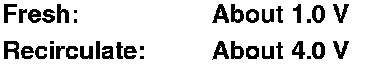 2. Connect battery power to terminal No. 1 of the recirculation control motor, and ground terminal No. 2; the recirculation control motor should run, and stop at Fresh. If it doesn't, reverse the connections; the recirculation control motor should run, and stop at Recirculate. When the recirculation control motor stops running, disconnect battery power immediately.