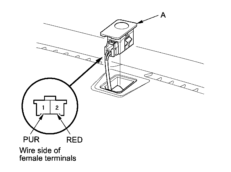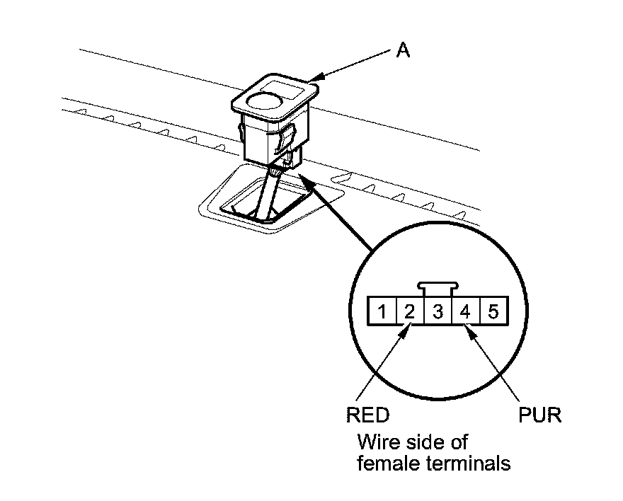 2. Turn the ignition switch to ON (II). Measure the voltage between the terminals with the (+) probe on terminal No. 4 (with automatic lighting) or No. 1 (without automatic lighting) and the (-) probe on terminal No. 2 with the connector connected.