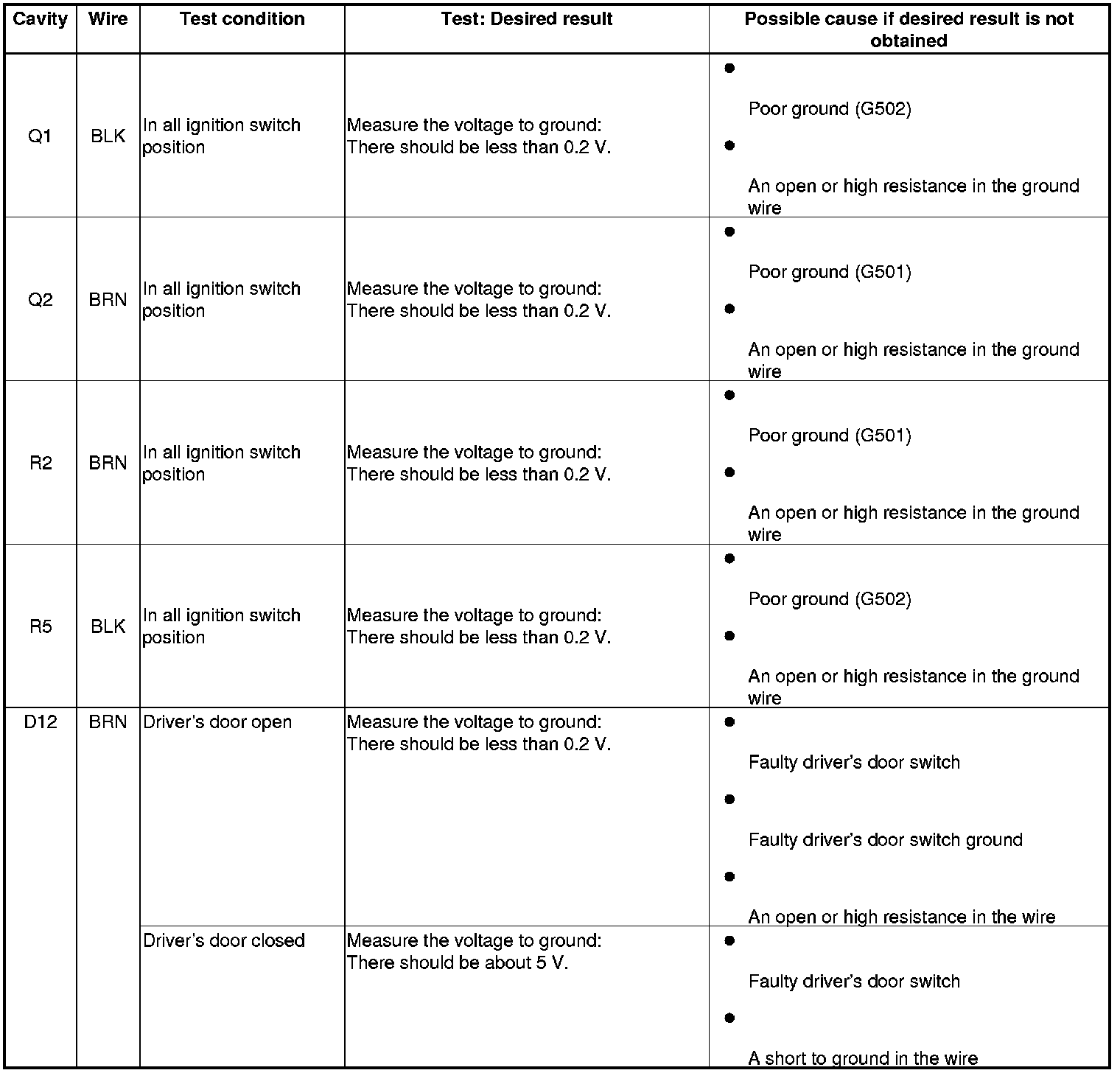 Reminder Systems (Drivers MICU and Gauge Control Module) Input Test