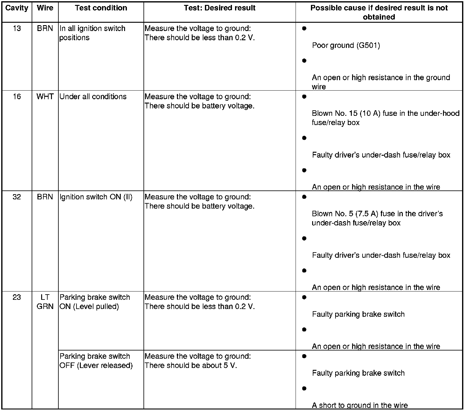 NOTE: Before testing, troubleshoot the multiplex integrated control unit first, using B-CAN System Diagnosis Test Mode A Troubleshooting - B-CAN System Diagnosis Test Mode A.