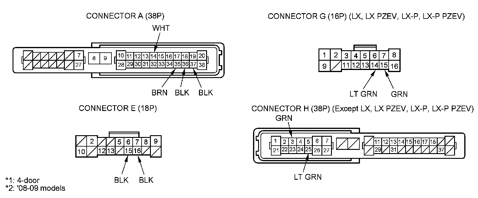 12. Reconnect the 37P connector to the door multiplex control unit, and do these input tests at the following connector.