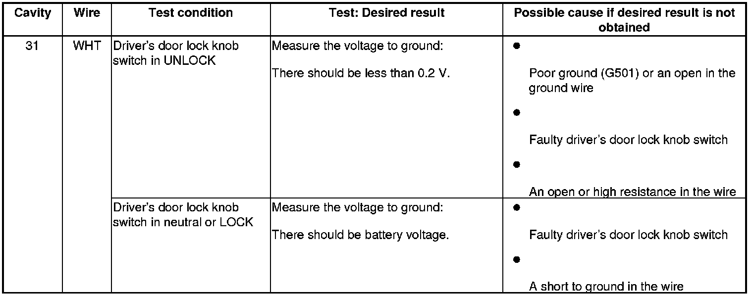 8. Reconnect the connectors to the passenger's under-dash fuse/relay box, and do these input tests at the following connectors.