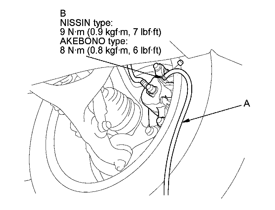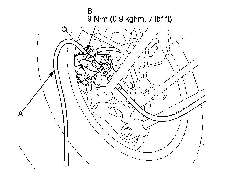 4. Attach a length of clear drain tube (A) to the bleed screw (B), then loosen the bleed screw to allow air to escape from the system. Then tighten the bleed screw securely.
