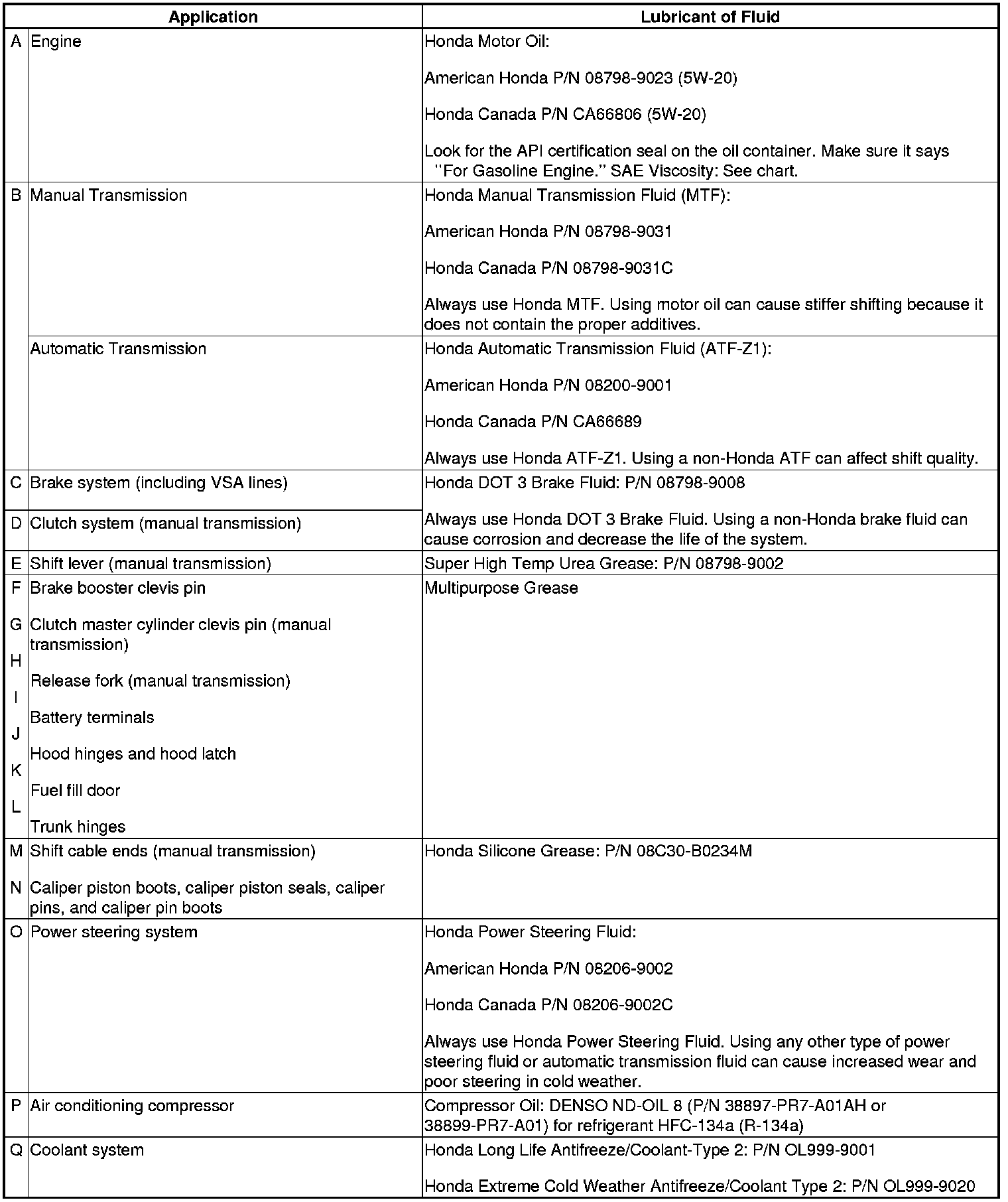 - Lubricate the following areas using the recommended lubricants and fluids.