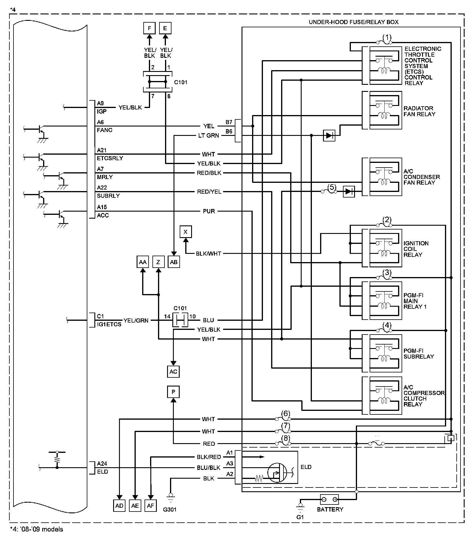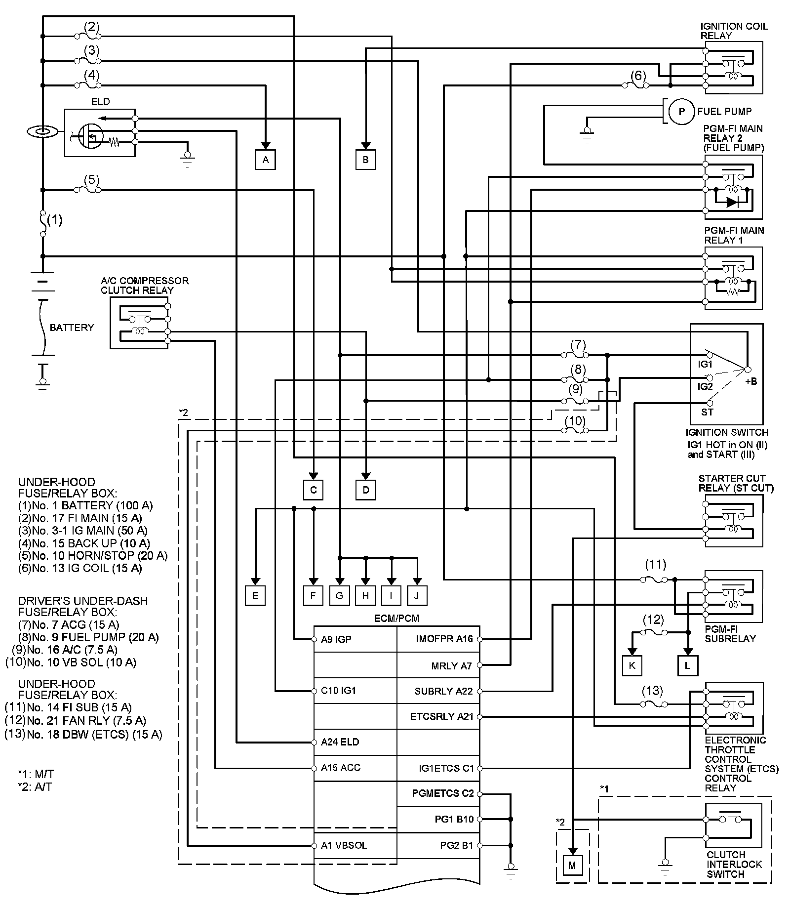 After the ignition switch is turned to LOCK (0), the ECM/PCM stays on (about 40 minutes). If the ECM/PCM connector is disconnected during this time, the ECM/PCM may be damaged. To cancel this mode, disconnect the negative cable from the battery or jump the SCS line with the HDS after the ignition switch is turned to LOCK (0).