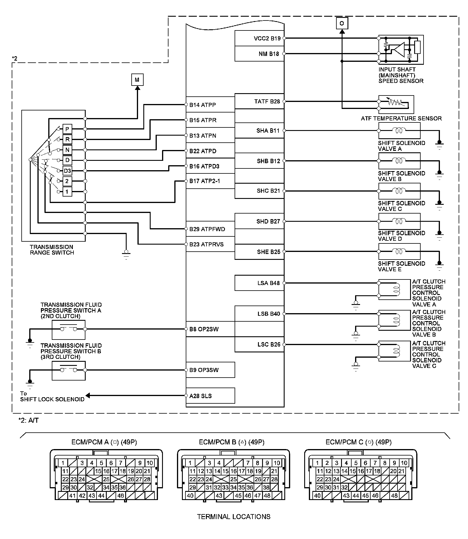 ECM/PCM Inputs and Outputs at ECM/PCM Connector B (triangle) (49P)
