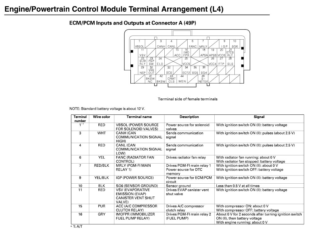 ECM/PCM Inputs And Outputs At Connector A