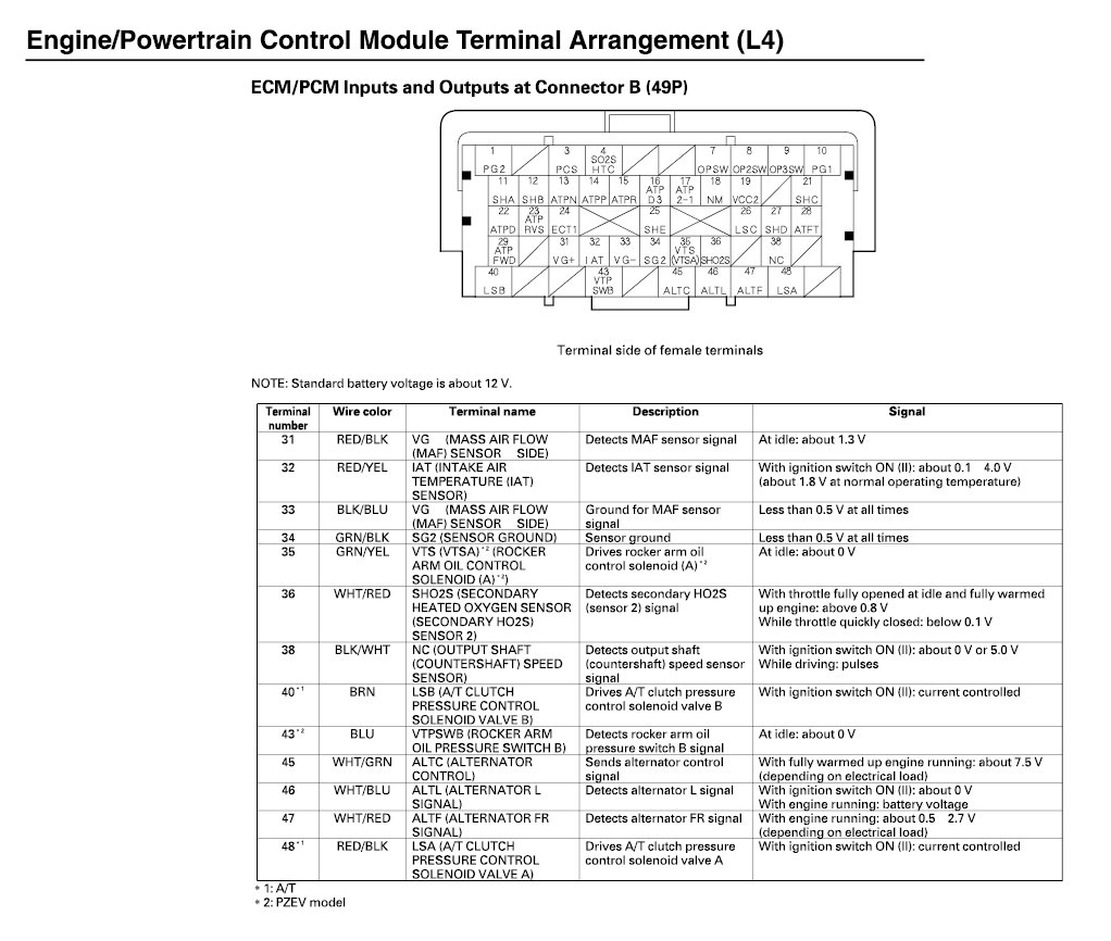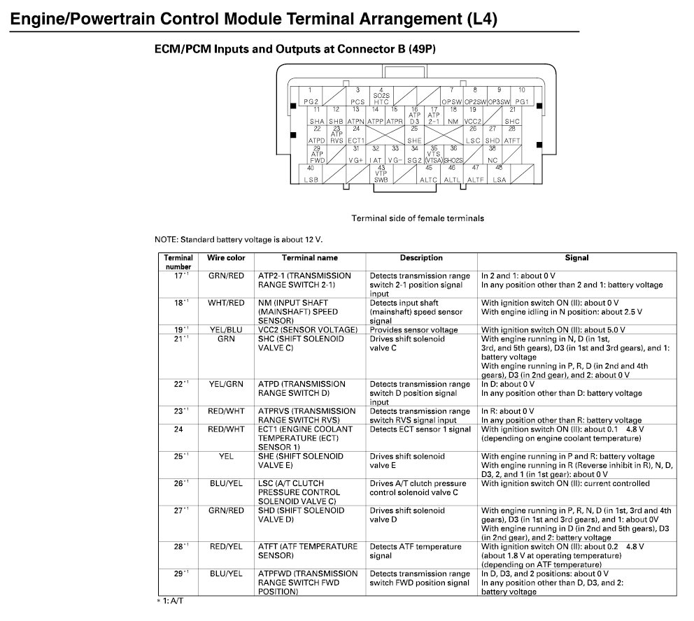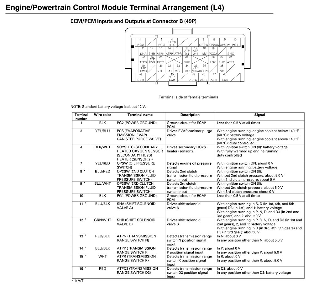 ECM/PCM Inputs And Outputs At Connector B